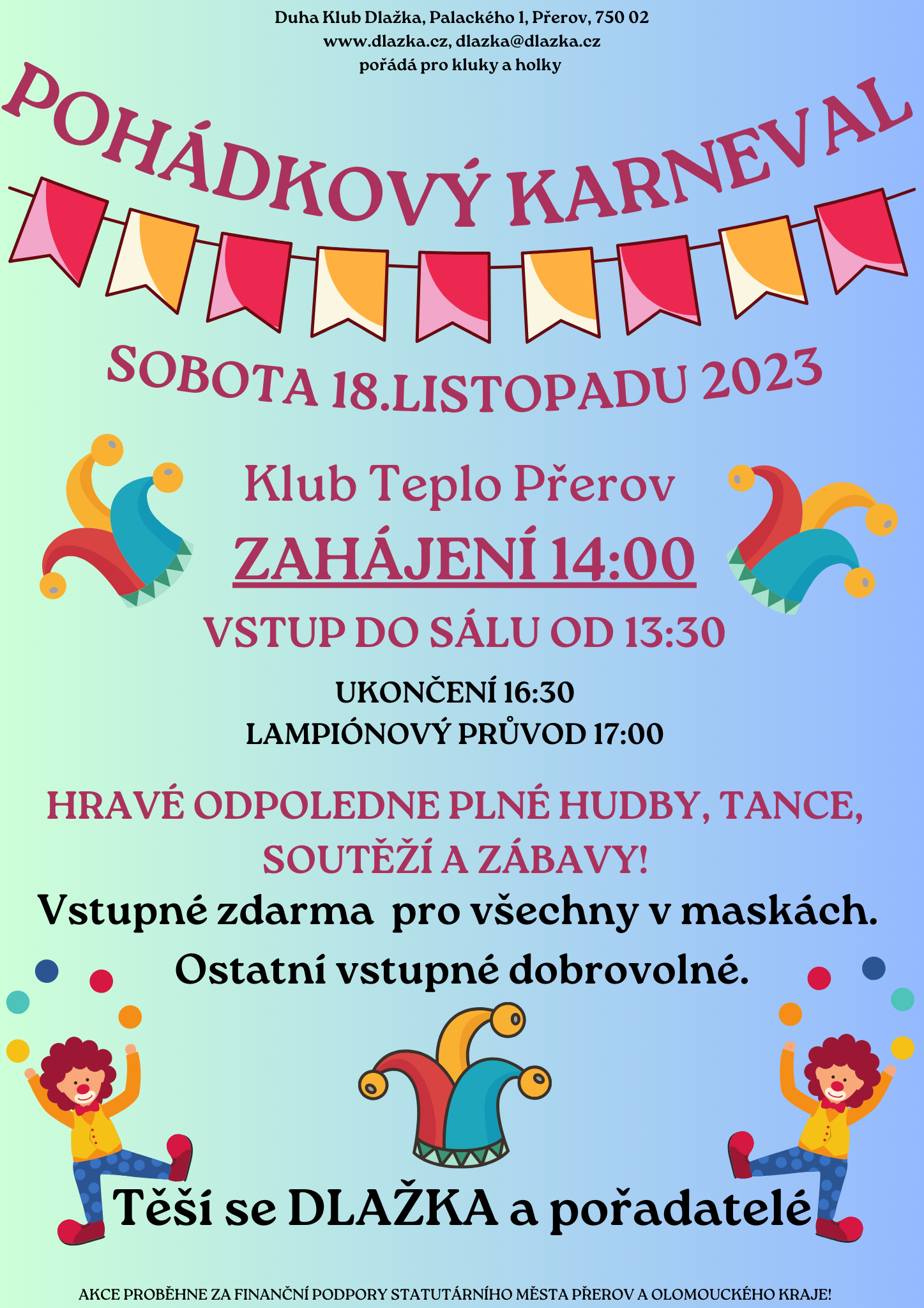 Karneval v rámci 21. ročníku festivalu hudby a slova Hudboslovení 2023! Akce proběhne za finanční podpory Statutárního města Přerov a Olomouckého kraje!